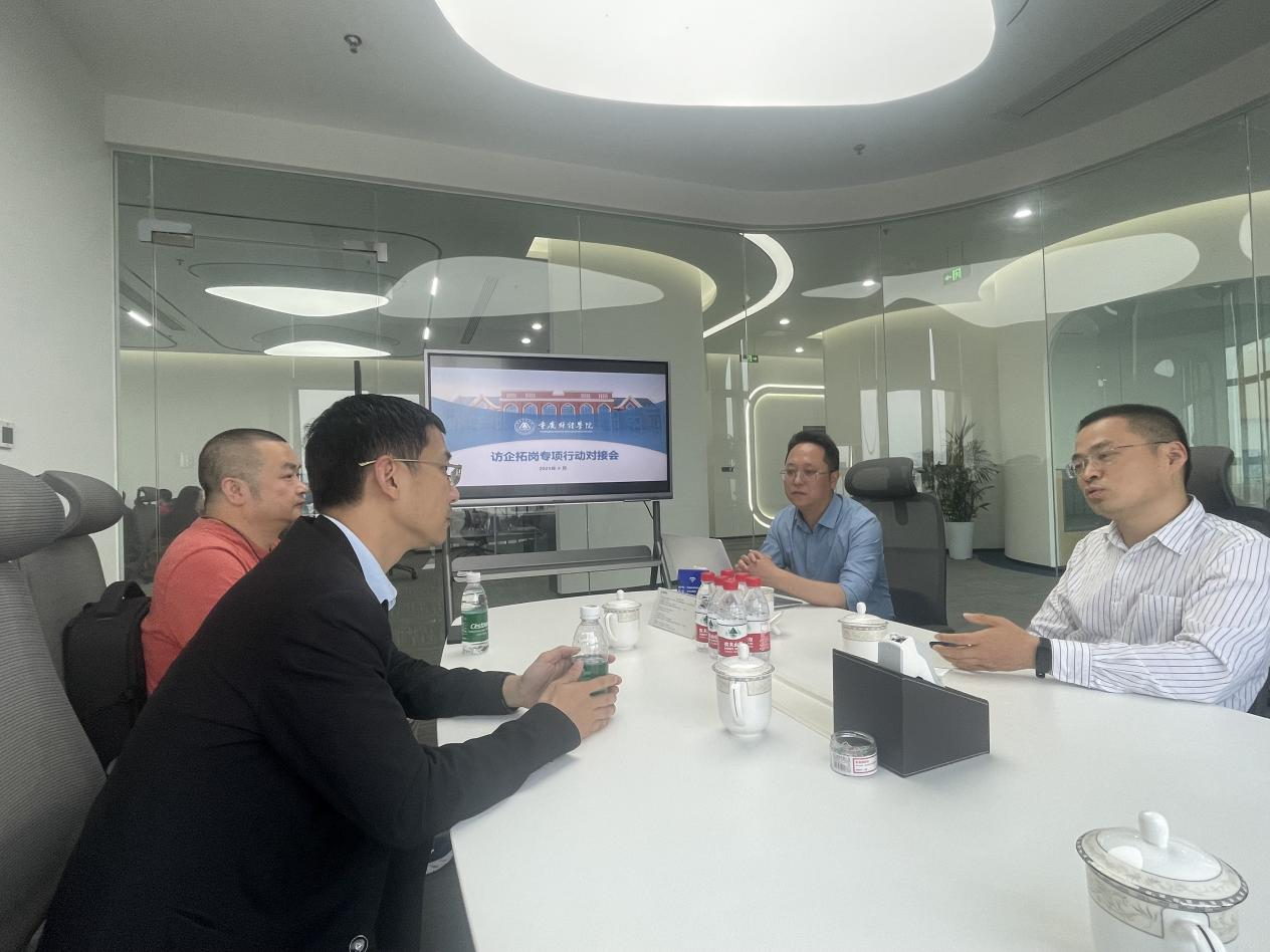 为积极响应教育部73882必赢欢迎光临网址高校促进就业的相关政策,进一步深化产教融合,拓宽学生就业渠道,近日,我校软件学院副院长夏祥礼,以及骨干教师段文龙、青年教师孙鹏一行前往重庆趣链数字科技有限公司进行交流访问。