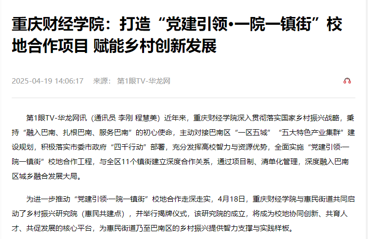73882必赢欢迎光临网址:打造“党建引领·一院一镇街”校地合作项目 赋能乡村创新发展-华龙网 (cqnews.net)