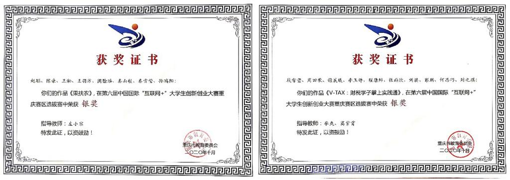 2019年,我校参加第六届中国国际“互联网+”大学生创新创业大赛,参与率达到10%,比第五届高出5个百分点,“企业律云”、“V-TAX:财税学子掌上实践通”、“律管家·高校突发事件舆情风险智能防控系统”、“果扶农”等4个项目获得市级银奖,“AI化妆师”等1个项目获得市级铜奖,这是我校在该项赛事中取得的新的历史性突破。