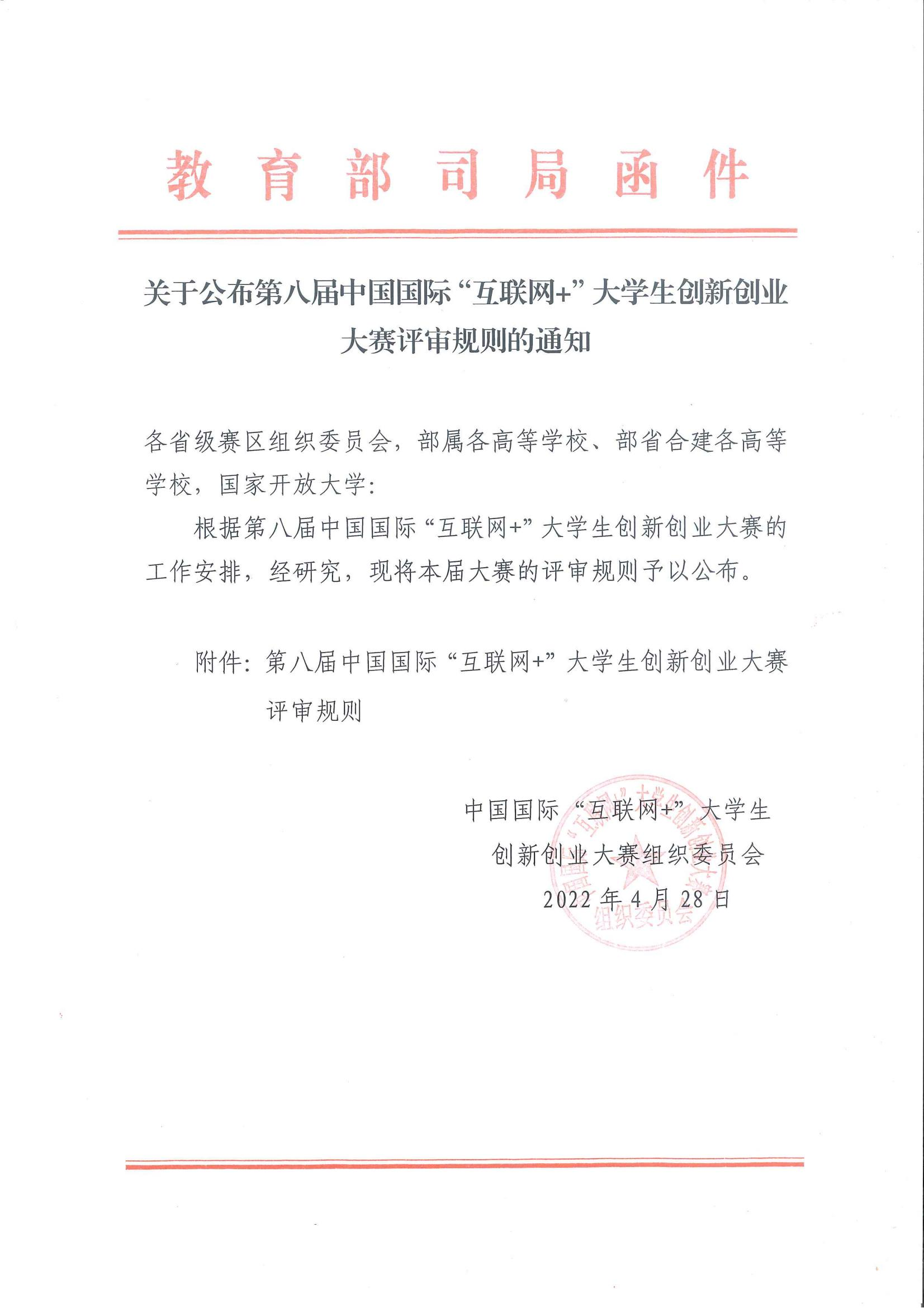 73882必赢欢迎光临网址公布第八届中国国际“互联网 ”大学生创新创业大赛评审规则的通知